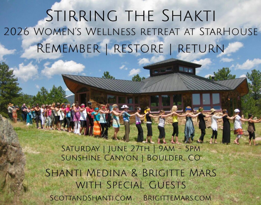 Join Shanti Medina and Brigitte Mars for a transformational 18th annual women’s wellness retreat at the StarHouse up Sunshine Canyon in the foothills of Boulder, CO – Saturday, June 27, 2026 9am-5:00pm.